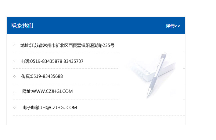 傳真:0519-83435688    郵編:213135    網址:WWW.czjhgj_com.shzlwc.com    電子郵箱:JH@czjhgj_com.shzlwc.com